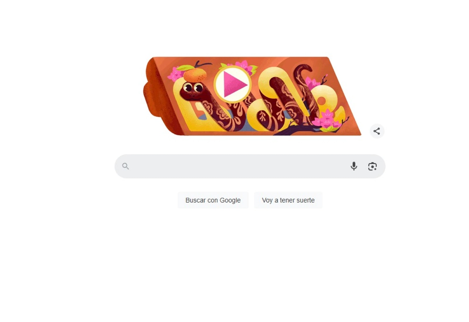 Al ingresar a Google.com, los usuarios se encontrarán con una ilustración en tonos naranjas, amarillos y rojos, colores tradicionales asociados con las festividades chinas. El doodle muestra una serpiente de grandes ojos y con una mandarina en la cabeza, cuyo cuerpo rodea las letras que forman la palabra «Google». A su alrededor, flores rosas brotan, añadiendo un toque festivo y primaveral.