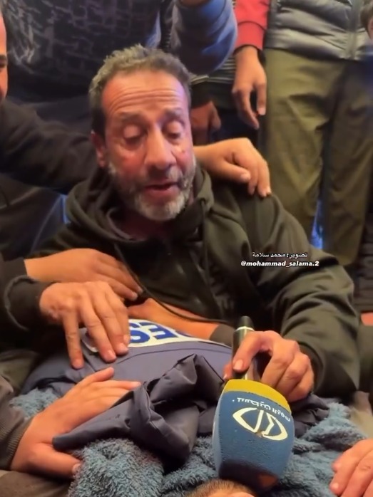 Un desgarrador video muestra al padre del periodista palestino Mohammed Mansour gritando entre lágrimas: «¡Despierta, despierta y dile al mundo!», tras el asesinato de su hijo, su nuera y su nieta en un bombardeo israelí en Khan Younis.