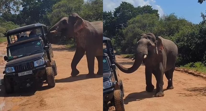 Turistas que disfrutaban de un safari en el Parque Nacional Yala, en Sri Lanka, vivieron momentos de intensa angustia cuando un elefante salvaje embistió el jeep en el que se trasladaban.