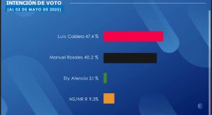 La intención del voto en el muestreo, revela que la preferencia en el proceso electoral pautado por el CNE para el próximo 25 de mayo, es hacia el candidato del Gran Polo Patriótico Simón Bolívar (GPPSB) y del Partido Socialista Unido de Venezuela (PSUV), Caldera, con el 47.4%, seguido del postulado por UNT a la reelección, Rosales, con un 43.2 % y el candidato por AD, Ely Atencio con 3.1%; mientras que el 9 3% no sabe o no respondió la encuesta.