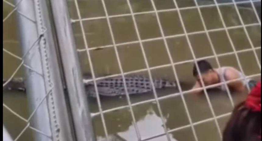 Un hombre de 29 años estuvo al borde de la muerte en el zoológico Kabug Mangrove Park and Wetlands en Filipinas tras ingresar imprudentemente al estanque de un cocodrilo con la intención de capturar una selfie. El aterrador incidente, ocurrido recientemente, fue registrado en video y rápidamente se viralizó en las redes sociales.