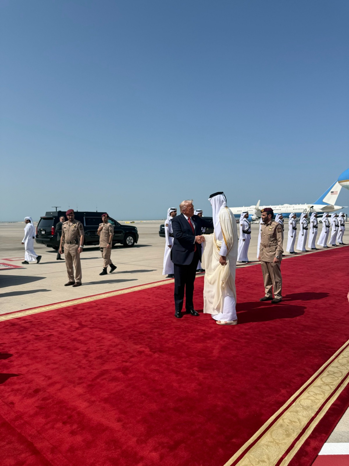 Durante el encuentro, el jeque Tamim expresó su satisfacción por la visita y destacó su importancia histórica: “Estoy extremadamente honrado y muy feliz. Es usted el primer presidente estadounidense en visitar oficialmente Qatar”.