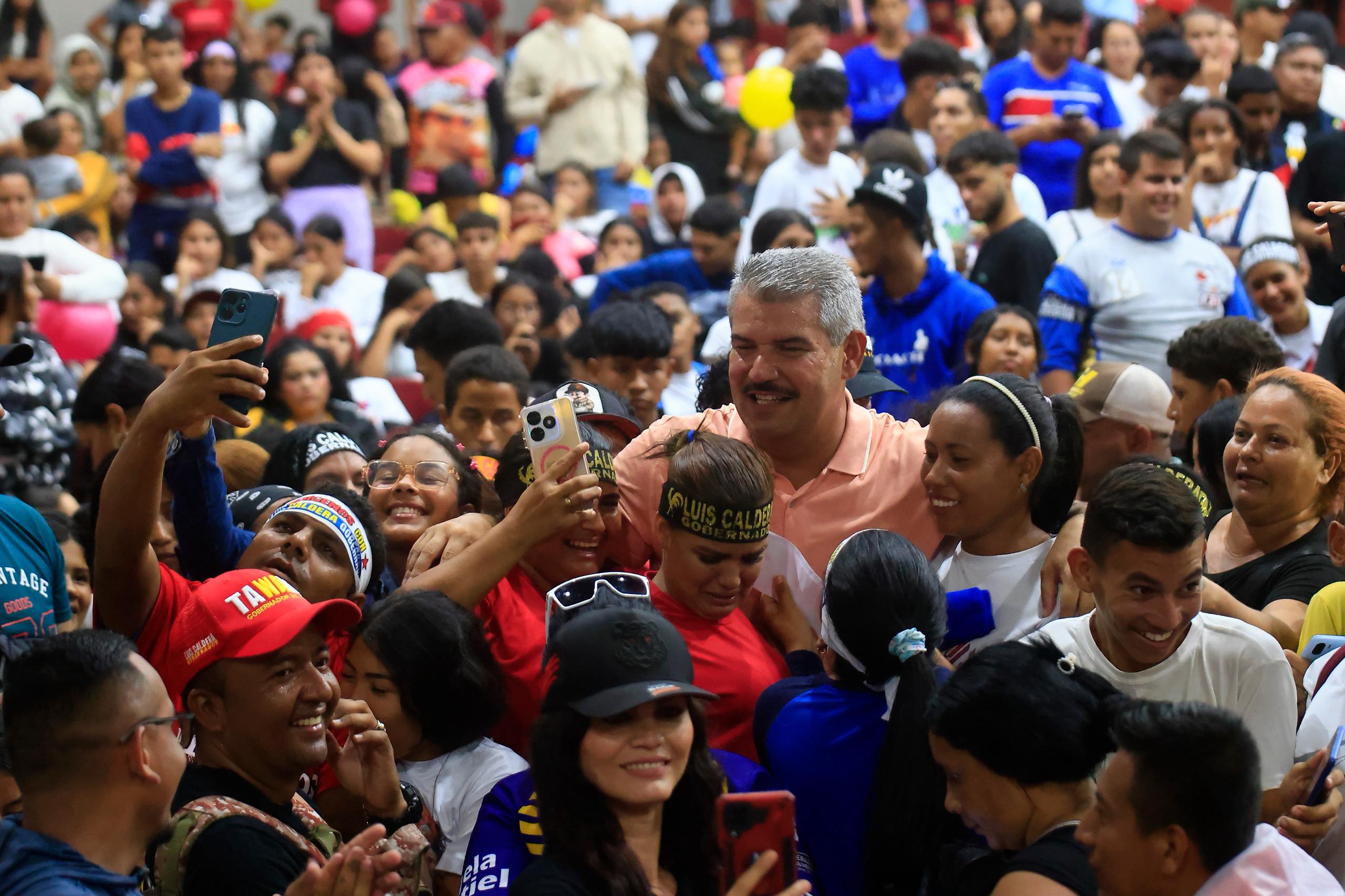 La alegría de los jóvenes en el Teatro Niños Cantores fue compartida por el candidato de la Patria en el Zulia, quien fue recibido con la consigna “Y ya llegó, y ya está aquí, la juventud que está con Luis”, que se confundía con los tambores chimbangaleros y el baile de los muchachos y muchachas que determinó que su compromiso con la historia de un Zulia próspero y de futuro es posible con Caldera.