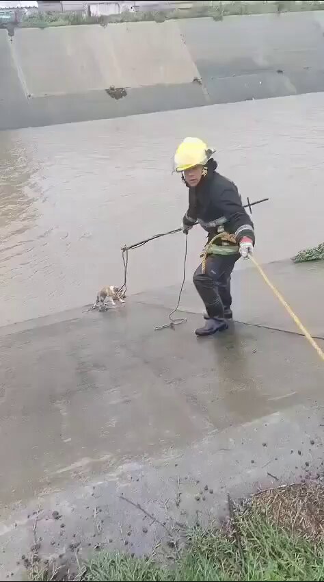 Los testigos relataron que el can se estaba ahogando y necesitaba ayuda de inmediato. Sin embargo, no se trataba de una operación sencilla, puesto que los bomberos debían descender hasta el cauce del río para poder sacar al animal del agua. Un valiente bombero tuvo que utilizar cuerdas y un equipo de seguridad especializado para alcanzar al perrito. Posteriormente, lo subieron lentamente hasta tierra firme, en una maniobra cargada de tensión.