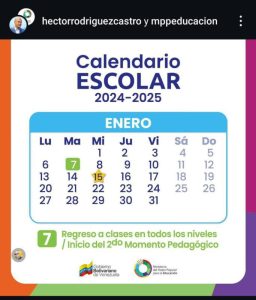El ministro de Educación, Héctor Rodríguez, anunció el calendario oficial para el inicio del año escolar 2025-2026. El personal administrativo volverá a sus funciones el 8 de septiembre, mientras que el regreso formal de los estudiantes está pautado para el 15 de septiembre. El período académico contará con un mínimo de 200 días de clases.