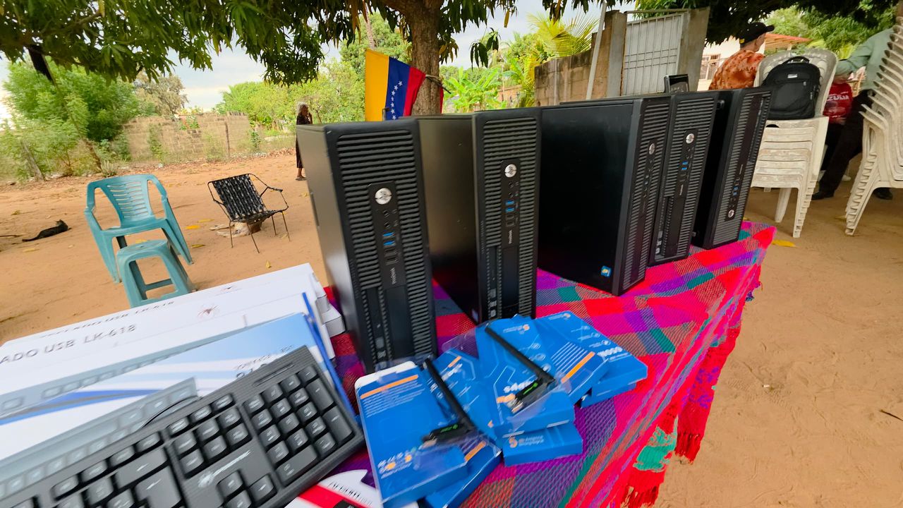 La entrega, que se realizó en las comunidades de Caña Brava, Juchon Josuu y El Sargento, entre otras en la parroquia Luis de Vicente; así como en La Chinca, El Quemao, Loma Koutai y Cocuiza Indígena, entre otras en Ricaurte, incluyó computadoras, fuentes de poder, monitores, papelería, toners, impresoras y otros equipos para el desarrollo educativo de los beneficiarios.