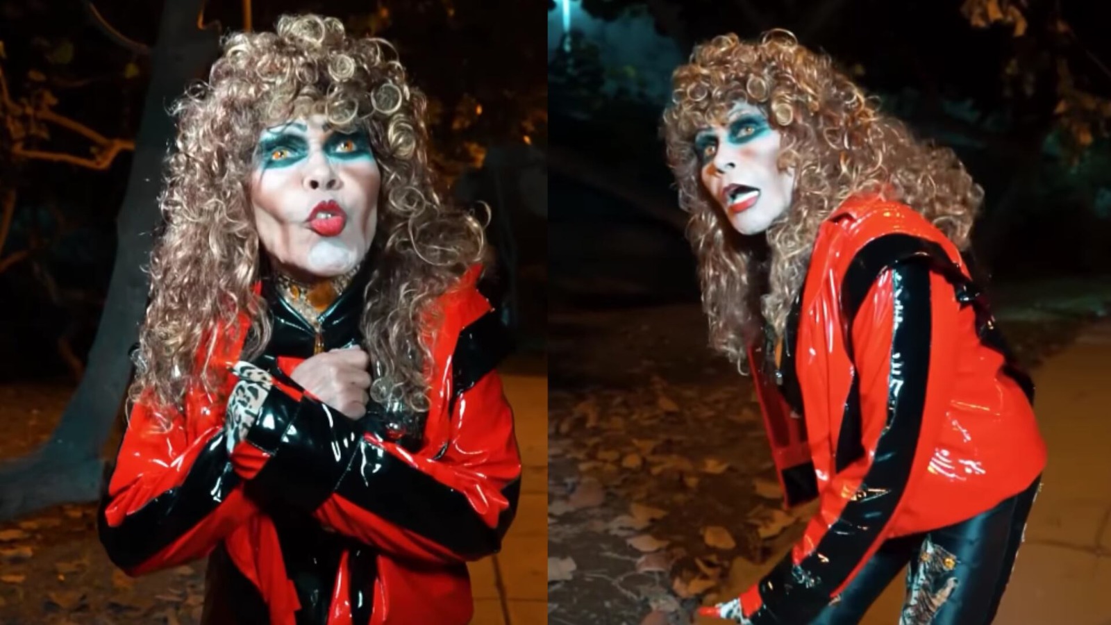 La artista, de 79 años, compartió el videoclip en sus plataformas oficiales, donde aparece transformada en la figura del icónico video original: un maquillaje tenebroso y una coreografía que emula a los zombis, todo aderezado con su característico toque selvático y kitsch.