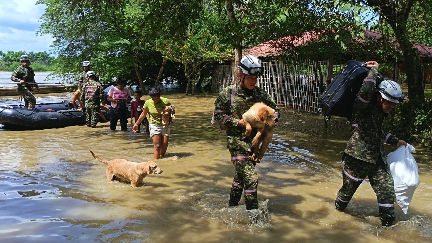 Por su parte, el Ejército Nacional de Colombia intensificó sus labores en los rincones más críticos del departamento, logrando una cifra récord de rescates animales en tiempo récord. Según el reporte oficial, los soldados rescatistas han logrado poner a salvo a cerca de 300 animales que se encontraban en riesgo de ahogamiento o inanición.