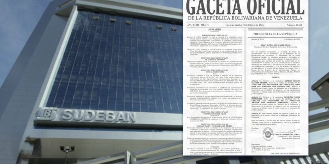 El Ejecutivo Nacional ha oficializado el nombramiento de la ciudadana Anmy Ivonett Pérez González como la nueva Superintendenta de las Instituciones del Sector Bancario (Sudeban), según lo establecido en el Decreto Presidencial Nº 5.250, publicado en la Gaceta Oficial Nº 43.314 con fecha del 10 de febrero de 2026.