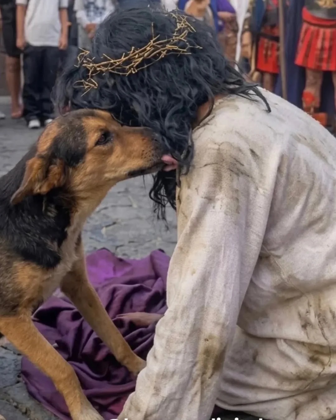 Lo que estaba programado para ser una solemne representación del Viacrucis se transformó en una poderosa lección de empatía que ha dado la vuelta al mundo. Un perro callejero, ajeno a los guiones y a las actuaciones, irrumpió en la escena con una reacción que dejó a los presentes en un silencio absoluto y conmovido.