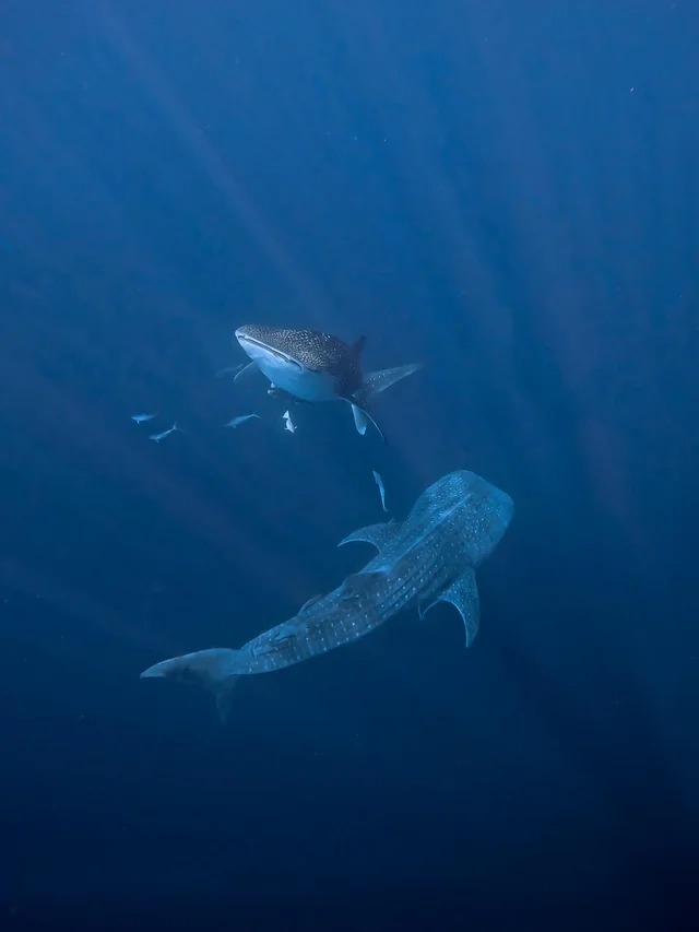 En el metraje compartido por Álvarez, se observa a estos imponentes ejemplares —conocidos como los peces más grandes del mundo— nadando con total tranquilidad cerca de la superficie. A diferencia de otros encuentros fortuitos, el buceador y su acompañante optaron por una postura de observación pasiva, permitiendo que los animales siguieran su curso natural sin interferencias.